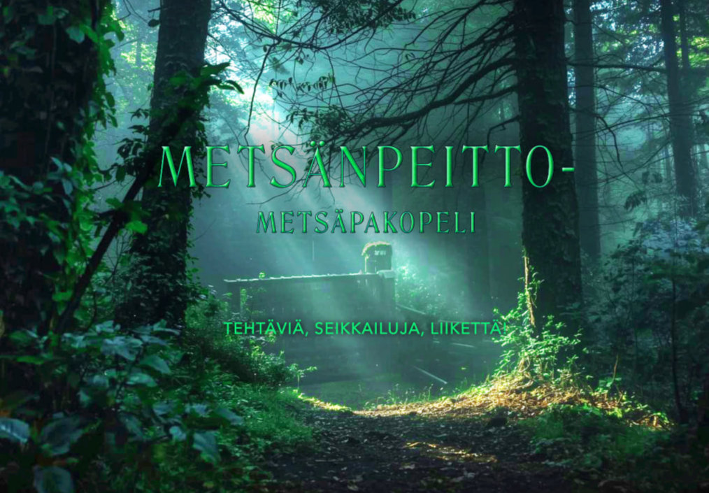 Metsänpeitosta pelastumiseen on erilaisia konsteja, ja tässä kulttuurikokeilussa kehitetyssä pakopelissä edetäänkin ratkaisemalla erilaisia kinkkisiä tehtäviä.
