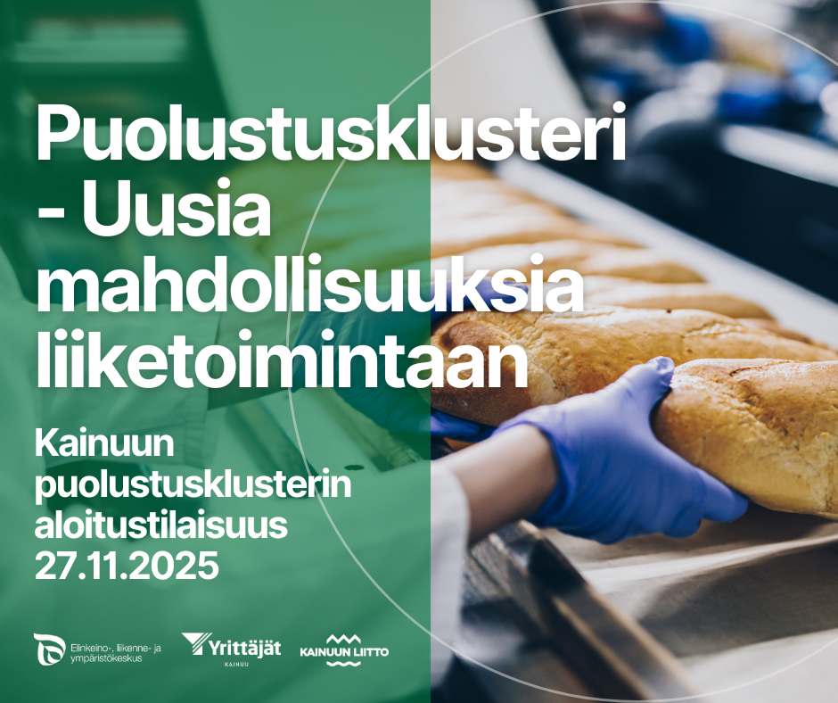 Kainuun ELY-keskuksen, Kainuun Yrittäjät ry:n ja Kainuun liiton järjestämään puolustusklusterin aloitustilaisuuteen ovat tervetulleita mukaan kaikenkokoiset kainuulaiset yritykset, joilla on jo tuotteita ja palveluja näihin tarpeisiin tai mielenkiintoa lähteä kehittämään niitä tulevaisuudessa.